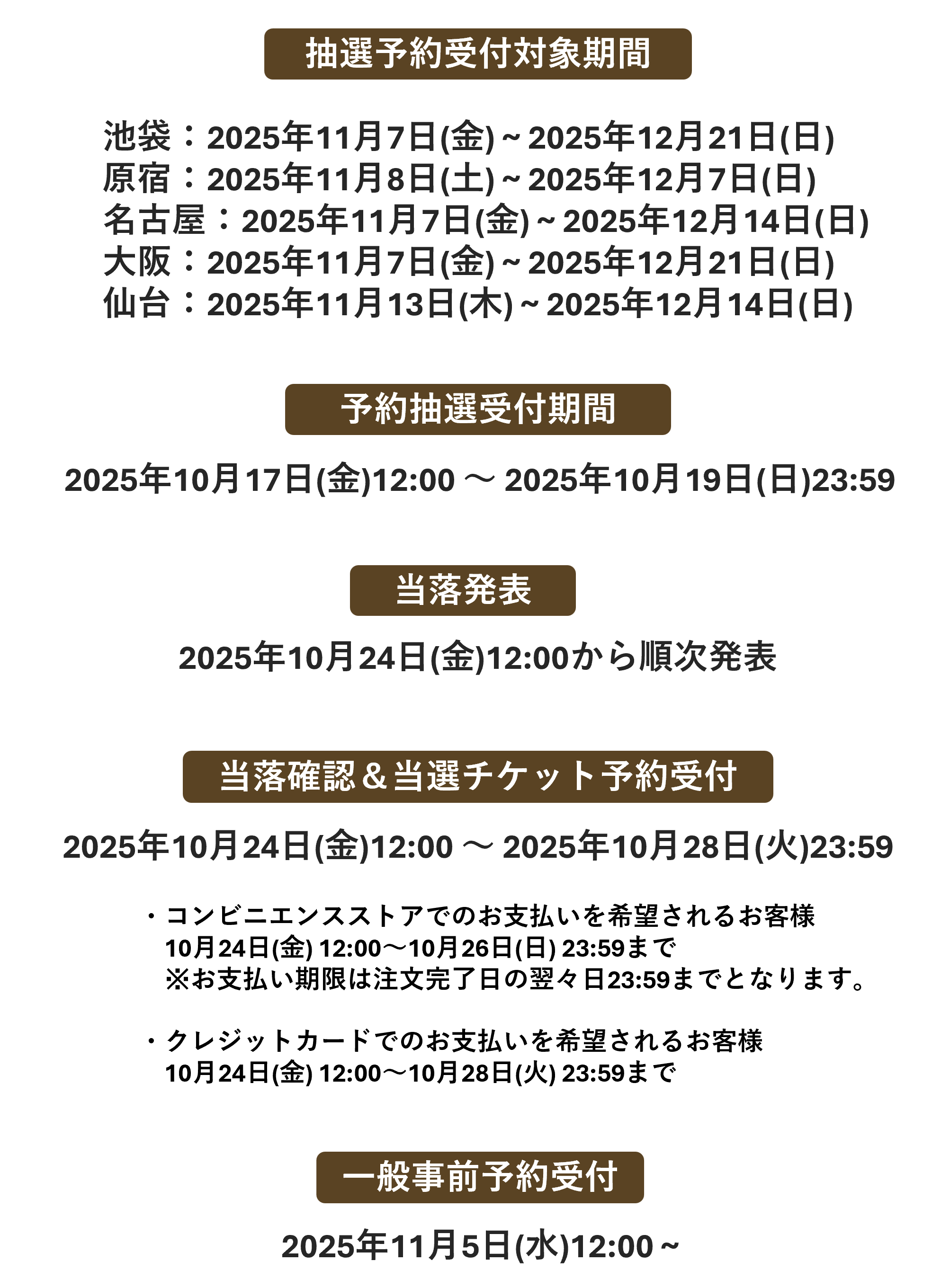 東京・大阪・名古屋・仙台にて開催が決定!!